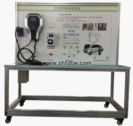 檢測(cè)控制面板(裝有各種檢測(cè)端子,彩色電路圖和工作原理示意圖)、國(guó)標(biāo)充電樁組件(國(guó)標(biāo)220V 32A,7KW)、國(guó)標(biāo)交流充電插座與充電槍、智能充電卡片)、國(guó)標(biāo)充電樁安裝測(cè)試系統(tǒng)、急停開(kāi)關(guān)與電源總開(kāi)關(guān)、線性可調(diào)放電負(fù)載、一體化全鋁合金型材搭建的移動(dòng)臺(tái)架(1500×700×1700mm 帶自鎖腳輪裝置,帶安裝檢測(cè)端子的原理面板,面板1448×940mm)、故障模擬與排除裝置、設(shè)備使用操作說(shuō)明書(shū)與實(shí)訓(xùn)實(shí)驗(yàn)指導(dǎo)書(shū)。