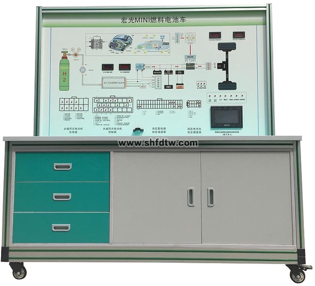 1.燃料電池電動汽車各系統(tǒng)正常運行,保留完整的動力傳動系統(tǒng)及控制系統(tǒng)。設備可實現(xiàn)電動車的教學實訓,可使學員對其元器件及控制單元直觀的認識(包括控制器、驅(qū)動電機、動力電池、燃料電池發(fā)動機、充電機、DC/DC轉換器、制動真空助力泵、倒車控制系統(tǒng)、暖風系統(tǒng)等)。