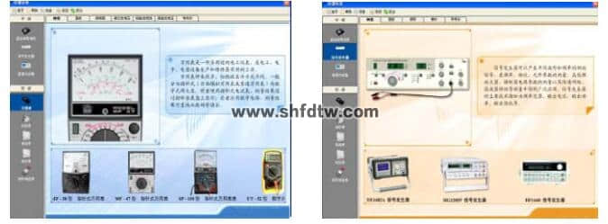 儀器儀表需包括指針式萬用表、數(shù)字式萬用表、普通示波器、信號(hào)發(fā)生器、直流穩(wěn)壓電源、毫伏表、高頻信號(hào)發(fā)生器、鉗形電流表等至少8個(gè)實(shí)訓(xùn)項(xiàng)目;每個(gè)實(shí)訓(xùn)項(xiàng)目中,根據(jù)不同內(nèi)容的教學(xué)大綱要求,需包含各種儀器儀表的外形、面板、使用操作、考考你等不少于3個(gè)實(shí)訓(xùn)任務(wù),其中,數(shù)字式萬用表實(shí)訓(xùn)任務(wù)需包括外形、面板、測(cè)電阻、測(cè)電壓(交、直流)、測(cè)電流、測(cè)二極管、測(cè)三極管、考考你;示波器項(xiàng)目中,當(dāng)鼠標(biāo)滑過面板上對(duì)應(yīng)聚焦、亮度、旋鈕等,對(duì)該部分作用均有文字描述顯示??伎寄銓?shí)訓(xùn)項(xiàng)目,要求趣味性答題,運(yùn)用游戲一樣的模式,對(duì)正確與錯(cuò)誤和時(shí)間的使用需做出記錄。