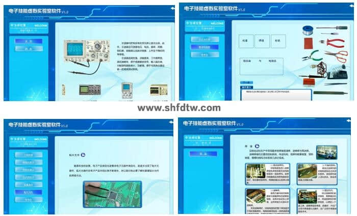 采用三維仿真技術(shù)而研制的仿真實(shí)訓(xùn)軟件,包括儀器儀表、導(dǎo)線加工、檢修工具、焊接工藝、電子器件、模擬電子技術(shù)、數(shù)字電子技術(shù)、生產(chǎn)工藝、插裝工藝、SMT工藝、收音機(jī)實(shí)訓(xùn)等11個(gè)實(shí)訓(xùn)單元,基本涵蓋了國家電子設(shè)備裝接工(中初級(jí))鑒定考核的全部主要模塊。本產(chǎn)品性能價(jià)格比高,是電子技能仿真實(shí)訓(xùn)室必備的主體軟件。