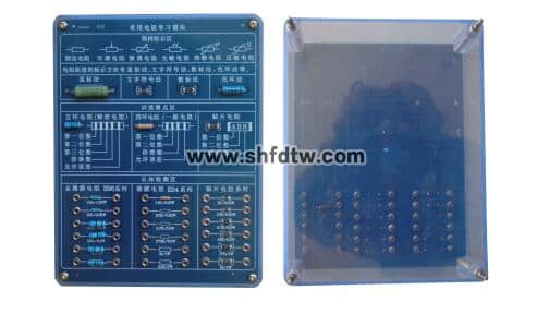 該掛板集成了電壓、電流、電阻測(cè)試,串并聯(lián)、混合聯(lián)的接線方式等實(shí)訓(xùn)所需器件。