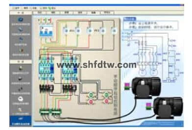 學(xué)員可以操作空氣開關(guān),按鈕等元器件來操控相應(yīng)項(xiàng)目的電路。界面上的接觸器、時(shí)間繼電器等元器件就可以根據(jù)操作控制電機(jī)的轉(zhuǎn)動(dòng)。