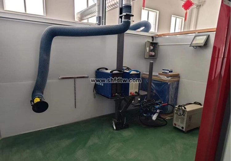 3、3米阿爾法柔吸臂,合理分配,布局美觀分組安裝處理焊接煙塵,每個柔吸臂口都有開關(guān),當(dāng)使用時可以打開,不使用時可以關(guān)閉。螺旋風(fēng)管組合合理,風(fēng)量壓力計算準(zhǔn)確。