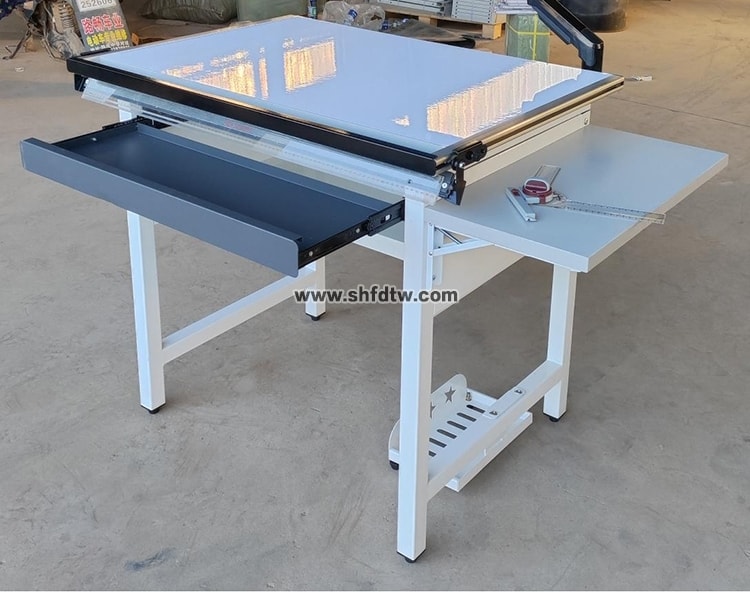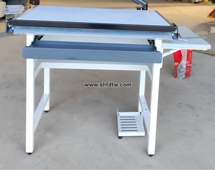 (7)圖板下側(cè)設(shè)置有一個(gè)鋁合金筆槽,用于臨時(shí)放置在繪圖過(guò)程中需要調(diào)換的繪圖筆等工具。