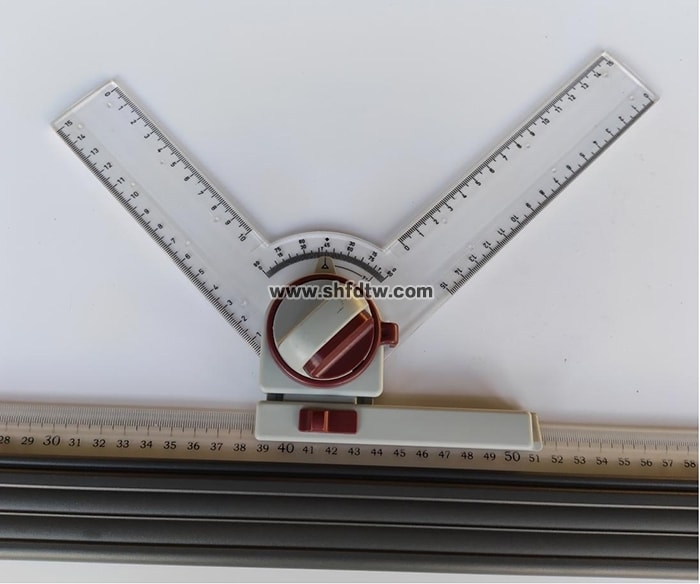 (1)鋁合金磁面繪圖板由磁面繪圖板及壓紙條、鋁金導(dǎo)軌及自潤(rùn)滑滑輪組、鎖緊組件、調(diào)節(jié)支架、鋁合金亞力克復(fù)合直尺、角度調(diào)整旋鈕,鋁合金筆槽等組成。