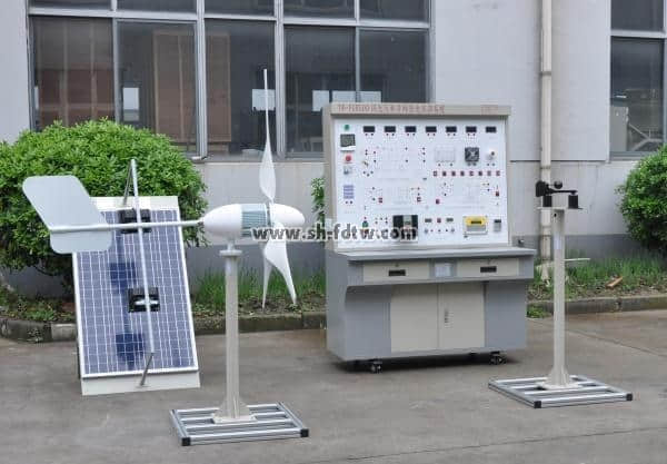 教學(xué)實(shí)訓(xùn)系統(tǒng)主要有,光電池組件及支架、小太陽模擬組及支架、主控實(shí)驗(yàn)平臺(tái)、監(jiān)控儀表、風(fēng)資源測(cè)試儀、模擬風(fēng)洞、模擬發(fā)電機(jī)、蓄電池、PC機(jī)、軟件等組成。