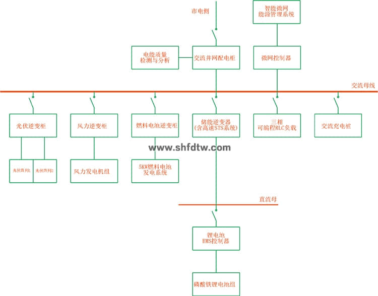 本系統(tǒng)為科研創(chuàng)新理念與實驗、實訓(xùn)型相結(jié)合的集風力發(fā)電,光伏發(fā)電、制氫系統(tǒng)、氫燃料電池發(fā)電、數(shù)據(jù)采集等多元化“風、光、氫混合型新能源實驗實訓(xùn)系統(tǒng)”。