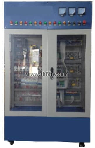 *2.機(jī)床實(shí)訓(xùn)柜采用鐵質(zhì)亞光密紋噴塑結(jié)構(gòu),正面上部為網(wǎng)內(nèi)電壓、電流、狀態(tài)指示燈等監(jiān)控原器件,中部為機(jī)床電氣柜,柜內(nèi)器件布局與實(shí)際機(jī)床廠的模式一致。電氣柜內(nèi)的電氣安裝板上面裝有變頻器、伺服驅(qū)動(dòng)器、交流接觸器、繼電器、保險(xiǎn)絲座、斷路器、開(kāi)關(guān)電源、接線端子排和走線槽、智能型故障模塊等;電氣柜后部還設(shè)有變壓器和接地端子等。