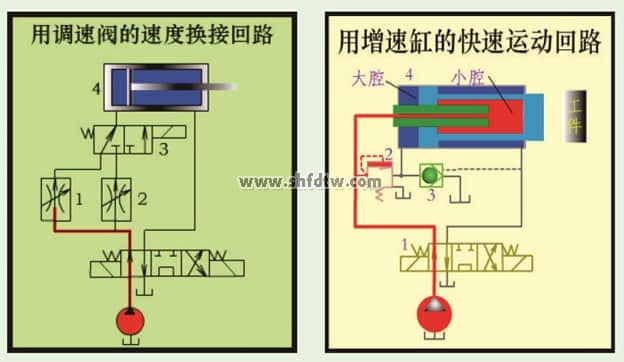 用增壓缸的快速運(yùn)動(dòng)回路 |