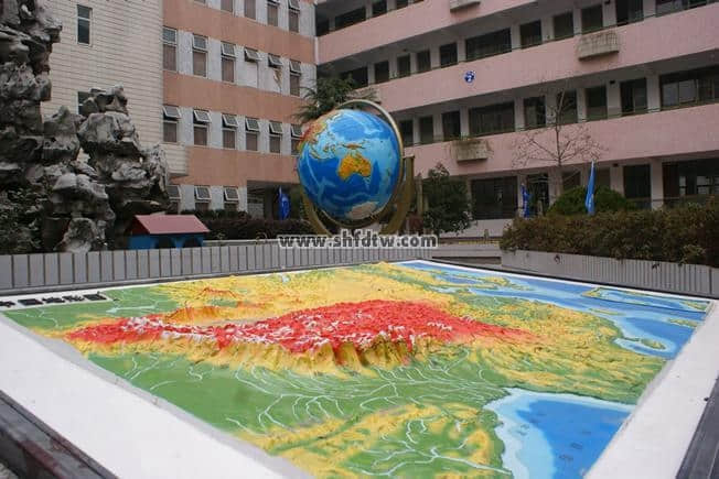 根據(jù)衛(wèi)星遙感資料和地形等高線精雕模具,嚴格按國家規(guī)定圖例顏色著色,聲光電一體化產(chǎn)品。