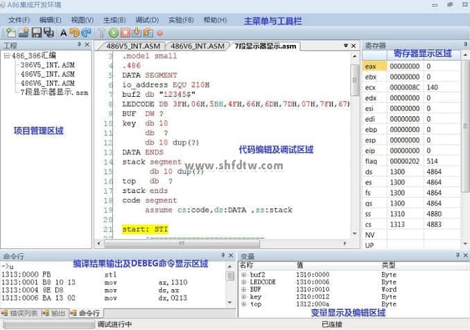 8.A86集成開(kāi)發(fā)環(huán)境實(shí)模式下的調(diào)試軟件界面