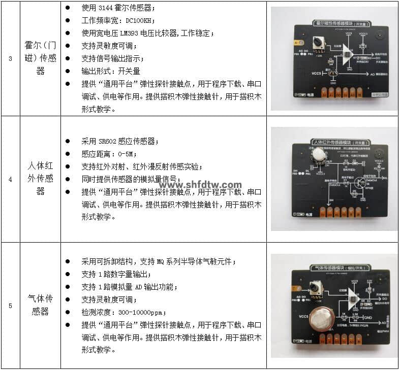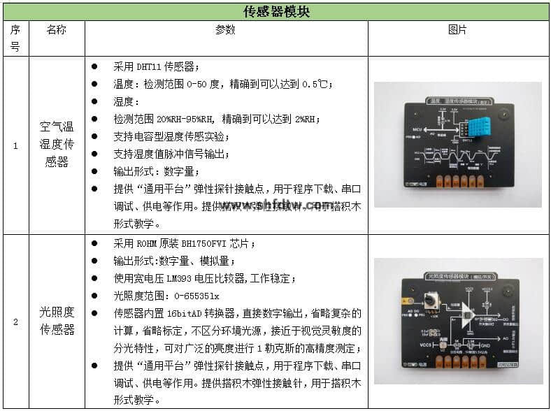 (標(biāo)配)傳感器/執(zhí)行器模塊:提供溫濕度、光照、霍爾、人體紅外、氣體、紅外對射、重量、雙路繼電器、風(fēng)扇、舵機(jī)執(zhí)行器模塊10種配套模組;