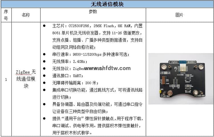 (標(biāo)配)基礎(chǔ)實(shí)驗(yàn)?zāi)K:ZigBee網(wǎng)關(guān)模塊(1個(gè))、ZigBee節(jié)點(diǎn)模塊(3個(gè))、WIFI模塊(1個(gè))、NB-IOT模塊(1個(gè))、STM32模塊(4個(gè));
