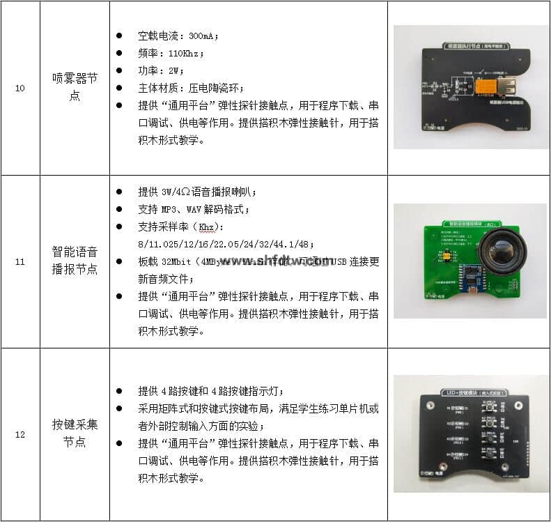 其他實(shí)驗(yàn)?zāi)K可選:智能語音播報(bào)節(jié)點(diǎn)、按鍵采集模塊、嵌入式開發(fā)主板、虛擬儀器模組、云平臺(tái)等
