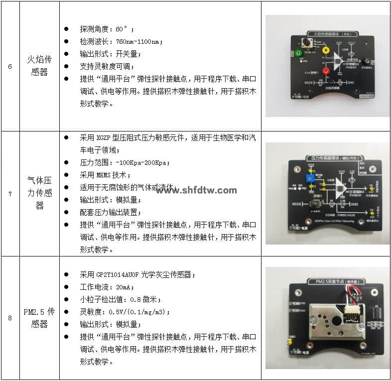 (選配)傳感器模塊:火焰、氣體壓力、PM2.5、土壤濕度、距離感應(yīng)、超聲波、加速度、PH值、電導(dǎo)率、二氧化碳、紅外測溫傳感器及其配套資料;