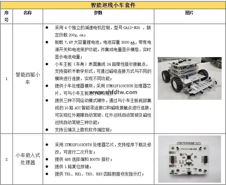 智能小車套件可選:智能四驅(qū)小車、嵌入式處理器、三種傳感器(紅外避障、紅外巡線、電磁巡線)人工智能攝像采集模塊、紅綠燈模擬器模塊、遠(yuǎn)程遙控模塊等;