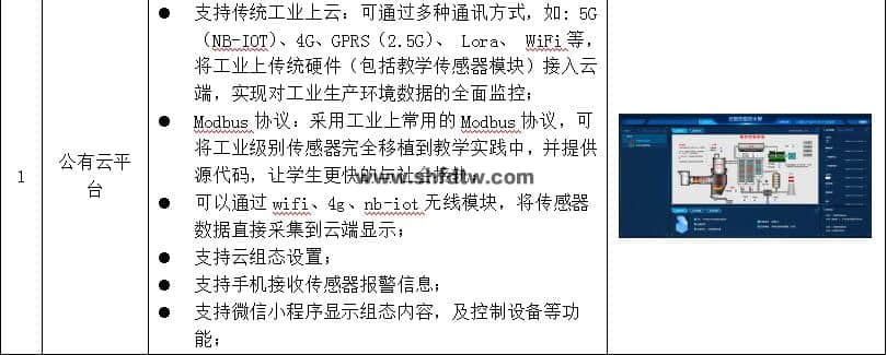 (選配)工業(yè)云平臺(tái):可通過多種通訊方式,如: 5G(NB-IOT)、4G、GSM(2.5G)、WiFi等,將工業(yè)上傳統(tǒng)硬件(包括教學(xué)傳感器模塊)接入云端,實(shí)現(xiàn)對工業(yè)生產(chǎn)環(huán)境數(shù)據(jù)的全面監(jiān)控,支持云組態(tài)設(shè)置,支持手機(jī)接收傳感器報(bào)警信息;