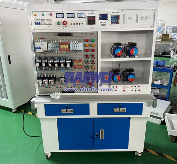 柜體右底裝有實訓(xùn)考核用的演示及驗證電機,電機所有的接線口都已引到面板上,通過專用安全導(dǎo)線與實訓(xùn)考核電路掛箱連接。