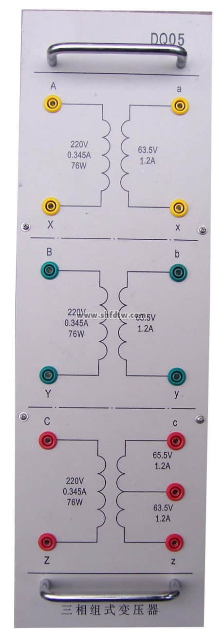 4、DQ05三相組式變壓器(三只相同的單相變壓器組成,原邊220V/0.35A,副邊55V/1.4A)