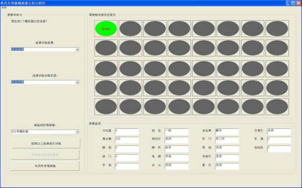 通過中央控制臺(tái),可以連接25臺(tái)駕駛艙進(jìn)行聯(lián)網(wǎng)訓(xùn)練。中央監(jiān)控臺(tái)由高性能計(jì)算機(jī)、、打印機(jī)、 100M 網(wǎng)絡(luò)交換機(jī)等組成。監(jiān)控計(jì)算機(jī)可以監(jiān)控任意一臺(tái)模擬器,監(jiān)視窗口將顯示與被監(jiān)視模擬器完全一樣的畫面,并實(shí)時(shí)圖形顯示其“五大”操作件——方向盤、離合器、腳制動(dòng)、油門及手制動(dòng)當(dāng)前的狀態(tài);另外檔位、喇叭、轉(zhuǎn)向燈、點(diǎn)火開關(guān)等的狀態(tài)也通過圖示表示出來。監(jiān)控計(jì)算機(jī)可以查看聯(lián)網(wǎng)的每一臺(tái)模擬器當(dāng)前錯(cuò)誤操作的明細(xì)情況,并將訓(xùn)練成績(jī)進(jìn)行打印。