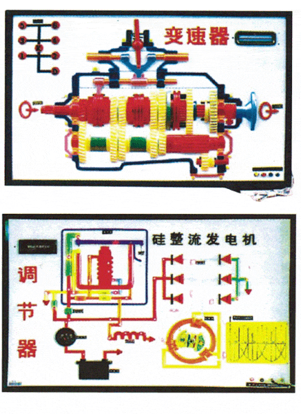 4、可自動控制每塊電教板工作原理的演示,彩燈逐點閃爍顯示各系統(tǒng)的油路、電路、水路、氣壓等工作原理,可快慢調(diào)節(jié),演示時機械部分、燈光部分、儀表部分都同步工作。