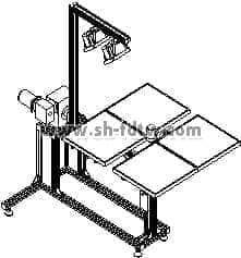 4塊光伏電池組件并聯(lián)組成光伏電池方陣,光線傳感器安裝在光伏電池方陣中央。2盞300W的投射燈安裝在擺桿支架上,擺桿底端與減速箱輸出端連接,減速箱輸入端連接單相交流電動(dòng)機(jī)。電動(dòng)機(jī)旋轉(zhuǎn)時(shí),通過(guò)減速箱驅(qū)動(dòng)擺桿作圓周擺動(dòng)。擺桿底端與底座支架連接部分安裝了接近開(kāi)關(guān)和微動(dòng)開(kāi)關(guān),用于擺桿位置的限位和保護(hù)。水平和俯仰方向運(yùn)動(dòng)機(jī)構(gòu)由水平運(yùn)動(dòng)減速箱、俯仰運(yùn)動(dòng)減速箱、直流電動(dòng)機(jī)、接近開(kāi)關(guān)和微動(dòng)開(kāi)關(guān)組成。直流電動(dòng)機(jī)旋轉(zhuǎn)時(shí),水平運(yùn)動(dòng)減速箱驅(qū)動(dòng)光伏電池方陣作向東方向或向西方向的水平移動(dòng)、俯仰運(yùn)動(dòng)減速箱驅(qū)動(dòng)光伏電池方陣作向北方向或向南方向的俯仰移動(dòng),接近開(kāi)關(guān)和微動(dòng)開(kāi)關(guān)用于光伏電池方陣位置的限位和保護(hù)。