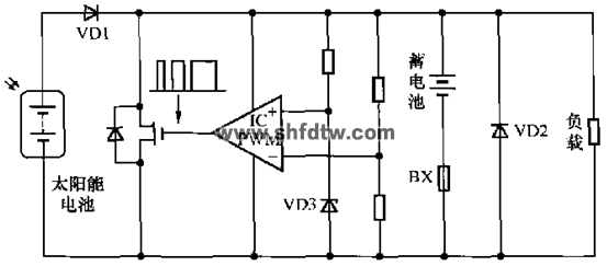 2)串聯(lián)型控制器:是利用串聯(lián)在充電回路中的機械或電子開關(guān)器件控制充電過程。