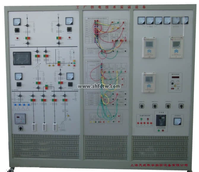 TW-GDGD03工廠供電技術實訓裝置是上海天威教學公司根據機械工業(yè)職業(yè)技能鑒定指導中心編寫的?高級電工技術?、?電工基礎(高級工適用)?、?電工技師培訓?等教材并結合?工廠供電?和?供配電技術?課程研制開發(fā)的。主要對教材中的35kV總降壓變電所、10kV高壓變電所供配電線路中涉及的微機繼電保護裝置、微機備用電源自動投入裝置、微機無功自動補償裝置、變頻器以及工業(yè)人機界面等電氣一次、二次、控制、保護等重點教學內容進行設計開發(fā)的,通過在本實訓裝置中的技能訓練能在深入理解專業(yè)知識的同時,培養(yǎng)學生的實踐技能。并且本套實訓裝置還有利于學生對變壓器、電動機組、電流互感器、電壓互感器、模擬表記、數字電秒表及開關等元器件工作特性和接線原理的理解和掌握。