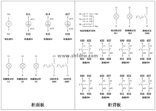3、設(shè)備配置:本設(shè)備按標(biāo)準(zhǔn)電氣控制柜設(shè)計(jì)制作,安裝有完成各種電氣控制所需要的多種低壓電器,如:漏電斷路器、電壓表、電流表、按鈕、信號燈、熔斷器、報(bào)警裝置、電流互感器、接觸器、時(shí)間繼電器、中間繼電器、熱繼電器、行程開關(guān)、轉(zhuǎn)換開關(guān)、整流二極管、電動機(jī)等。內(nèi)含:三相電源開關(guān)(單、三相斷路器各1只)、熔斷器5只、交流接觸器3只;電動機(jī)1只、電流互感器3只、熱繼電器2只、中間繼電器2只、時(shí)間繼電器2只、行程開關(guān)4只、接線端子若干。