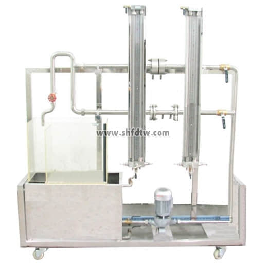 水泵、孔板流量計、文丘里流量計、計量水槽、秒表、U型壓差計、蓄水箱、不銹鋼框架及管路、控制屏。