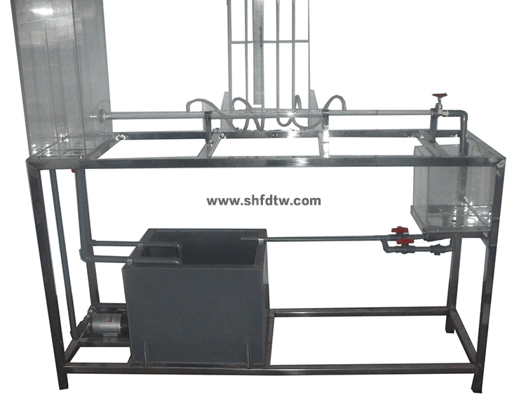 有機玻璃實驗水箱、局部阻力管、測壓管、水泵、蓄水箱、計量水箱、刻度標尺、秒表、玻璃溫度計、