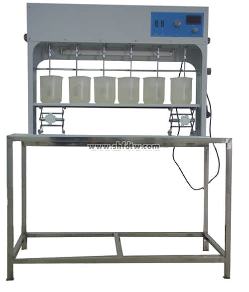 六聯(lián)攪拌裝置、燒杯6個(gè)、不銹鋼升降臺、不銹鋼框架。