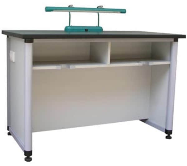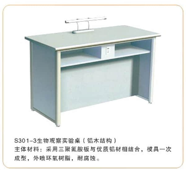 學生實驗臺面板采用25mm厚采用美國威盛亞貼面理化板、美國富美家彎曲防火板、高分子成型明潔石或鋼化玻璃等一次性成型制作,其余材料均為16mm厚三聚氰胺貼面中密度板,由德國進口流水線木工機械設(shè)備加工而成,高溫封邊,自動修邊,造型美觀,經(jīng)久耐用,永不脫膠。