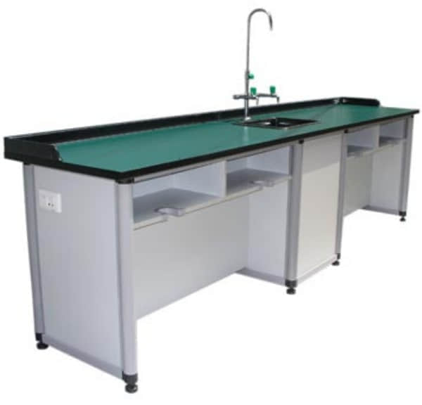每臺實驗臺中間裝有銅質(zhì)鍍鉻三聯(lián)化驗水咀,水封式化驗水糟,供學(xué)生給水使用。排水管采用UPC工程塑料,耐腐蝕,抗老化。