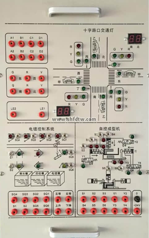 鋼制實(shí)訓(xùn)模塊掛箱洗衣機(jī)、售貨機(jī)、交通燈、搶答器等鋼制模塊按要求增加有時(shí)間、數(shù)字顯示。