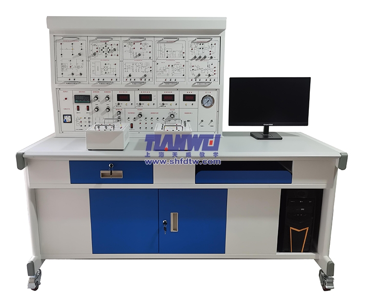 1、實(shí)訓(xùn)裝置主要由實(shí)訓(xùn)桌、實(shí)訓(xùn)臺(tái)、實(shí)訓(xùn)掛箱、、溫度源、轉(zhuǎn)動(dòng)源、數(shù)據(jù)采集通信等部分組成。實(shí)訓(xùn)臺(tái)上配有電壓表、電流表、頻率/轉(zhuǎn)速表、機(jī)械式壓力表、手動(dòng)氣壓源、PID智能調(diào)節(jié)儀及常用的穩(wěn)壓電源、信號(hào)源等。