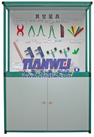 量具是測(cè)量零件的尺寸、角度等所用的測(cè)量工具,是指能直接表示出長(zhǎng)度的單位和界限的計(jì)量用具。如鋼直尺、游標(biāo)卡尺、量角尺、量塊、量規(guī)等。機(jī)械零件有各種不同的形狀和精度要求,因此量具和量?jī)x也有各種不同的類(lèi)型和規(guī)格。本套陳列柜共分五個(gè)柜,分別介紹機(jī)械制造中常用的各種量具。