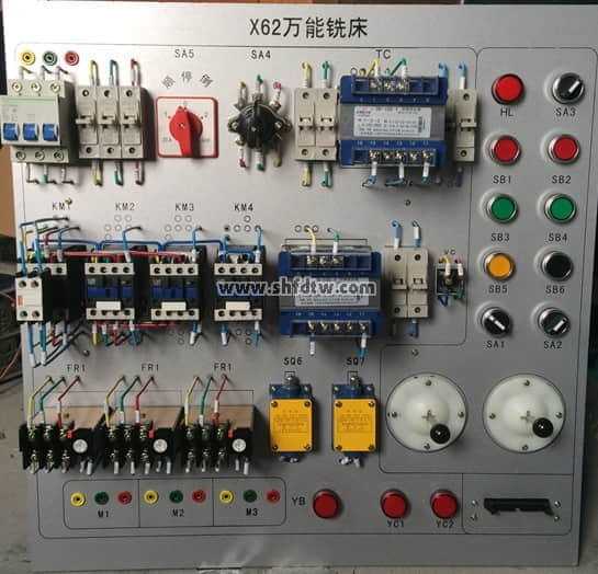 1、本裝置采用標(biāo)準(zhǔn)配電柜為主體柜,充分利用該柜雙面空間位置,把2種常用典型的機(jī)床線路組合在一個控制柜內(nèi),這2種機(jī)床分別為X62W型銑床、C6140普通車床,該控制柜的結(jié)構(gòu)設(shè)計合理緊湊。一臺裝置完成2種機(jī)床實(shí)訓(xùn)考核,經(jīng)濟(jì)效益更加顯著。