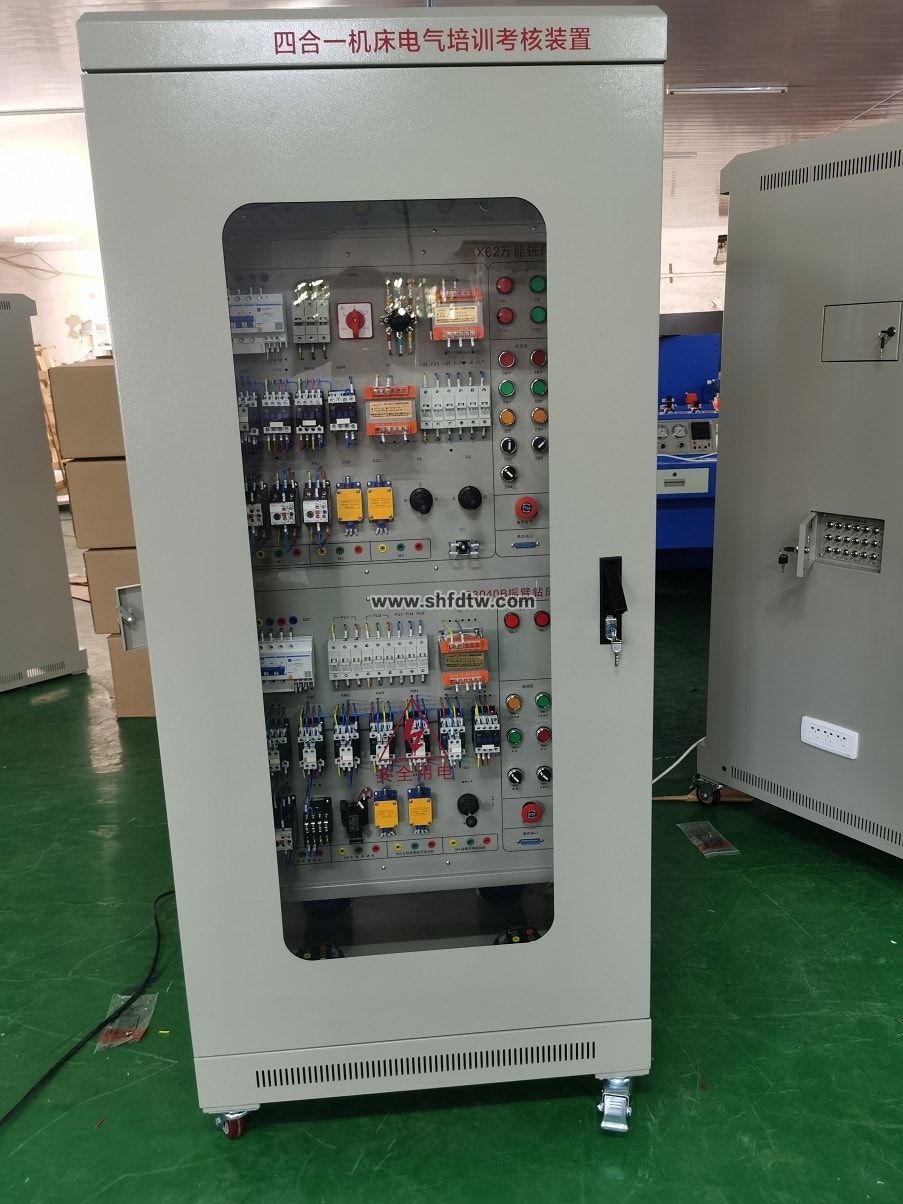 1、本裝置采用標(biāo)準(zhǔn)配電柜為主體柜,充分利用該柜雙面空間位置,每一面分別設(shè)有機(jī)床電氣線路;