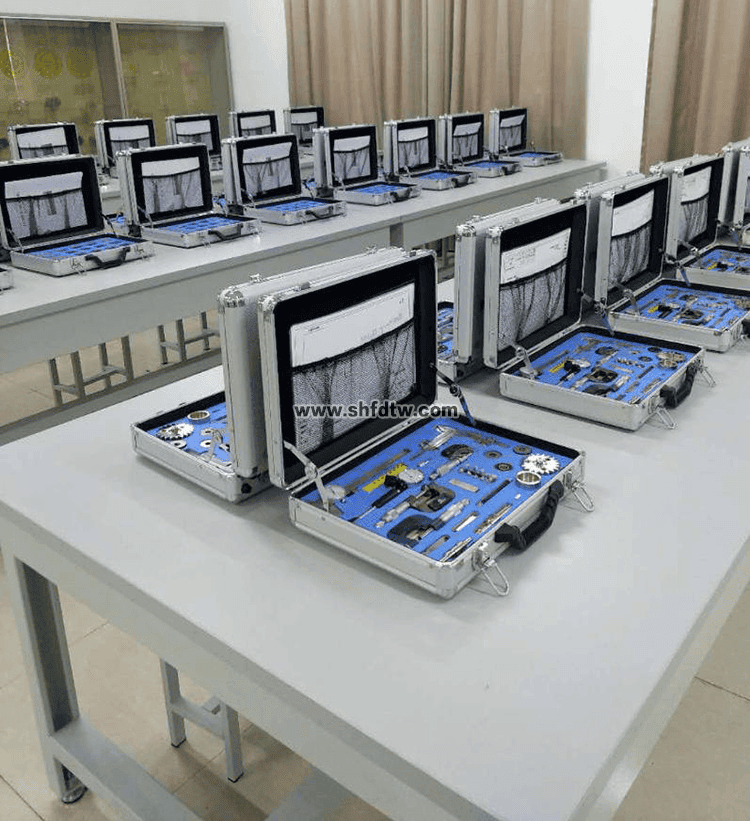3.實訓(xùn)箱里放置零件及工量具定位座板,定位座板上刻有零件及工量具的形狀;方便擺放和老師對裝置清點及管理。
