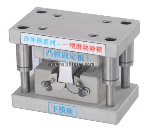 把板材料沿直線彎成各種形狀,可以加工形狀較復雜的零件。該模需為90度雙面彎曲模,以落料模產品作為導料,彎曲高度不小于10㎜,凸模內需設有浮動頂出結構,各零件需精密定位,并有定位銷確保拆裝方便。 |