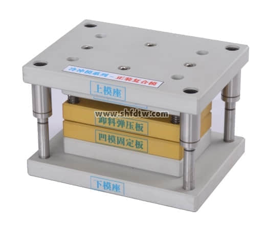 在模具同一位置上能完成幾個不同的工序的模具.落料凹模在下模處,凸凹模在上模,卸料、凹模、凸凹模均需設有浮動頂出結構,并能一次完成落料、沖孔工藝,下模設有擋料銷,各零件需精密定位,并有定位銷確保拆裝方便。 |