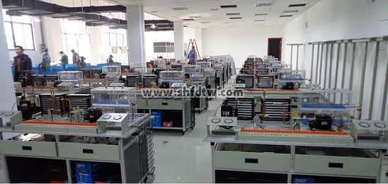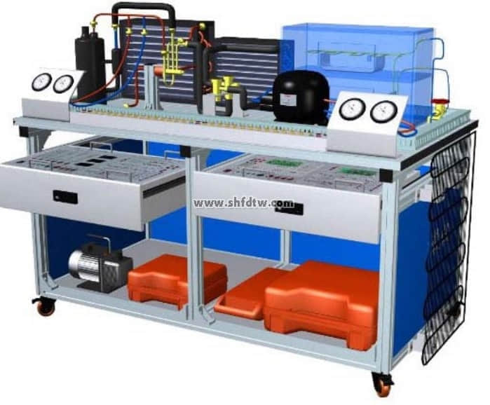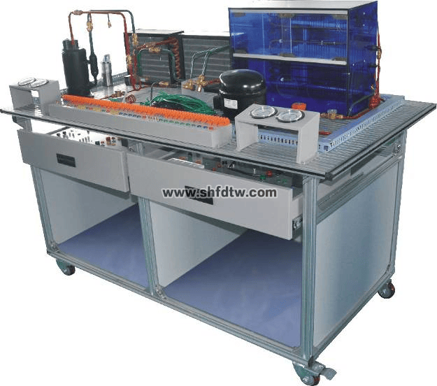 本裝置是專門為職業(yè)院校開設(shè)的制冷類相關(guān)專業(yè)而研制的,裝置根據(jù)制冷類行業(yè)中空調(diào)與冰箱維修技術(shù)的特點,針對空調(diào)和冰箱的電氣控制以及制冷系統(tǒng)的安裝與維修進行設(shè)計,強化了學(xué)生對空調(diào)冰箱系統(tǒng)管路的安裝、電氣接線、工況調(diào)試、故障診斷與維修等綜合職業(yè)能力。裝置融合了流體力學(xué)、熱力學(xué)、傳熱學(xué)和電氣控制等技術(shù),適合制冷類相關(guān)專業(yè)的教學(xué)和培訓(xùn)。
