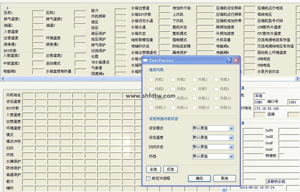 軟件可實(shí)現(xiàn)對內(nèi)機(jī)的控制,,可以對1-64臺(tái)內(nèi)機(jī)的狀態(tài)進(jìn)行設(shè)定。