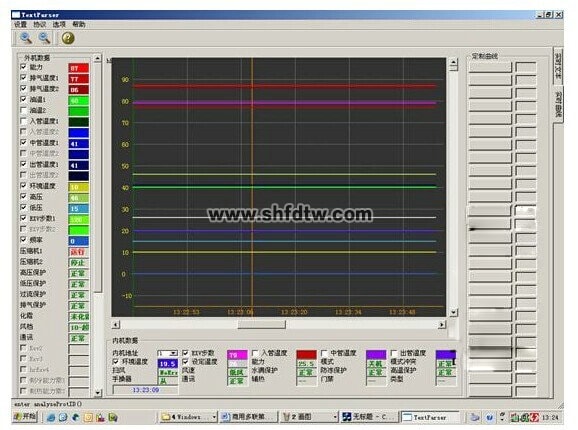 1、中央空調(diào)測試程序:中央空調(diào)機(jī)由于工程復(fù)雜,設(shè)備分散,有的已經(jīng)裝修在開花板上測試程序,一但出現(xiàn)了故障,工程量相當(dāng)大,為了能夠快速準(zhǔn)確地測出故障是由主機(jī)機(jī)組還是室內(nèi)機(jī)的故障的,每個(gè)生產(chǎn)廠家根據(jù)生產(chǎn)的和維修的需要而開發(fā)了中央空調(diào)測試程序??蓽y試壓縮機(jī)的運(yùn)轉(zhuǎn)頻率,傳感器的各種數(shù)據(jù),電子膨脹閥的工作步數(shù)等幾十種中央空調(diào)的工作數(shù)據(jù)和狀態(tài),軟件可實(shí)現(xiàn)對內(nèi)機(jī)的控制,,可以對1-64臺(tái)內(nèi)機(jī)的狀態(tài)進(jìn)行設(shè)定。是高校提供了好的研究的學(xué)習(xí)設(shè)備。