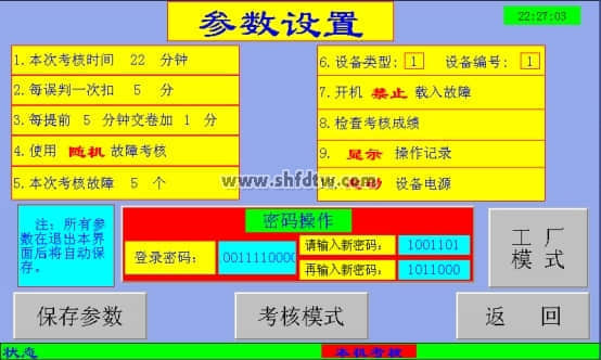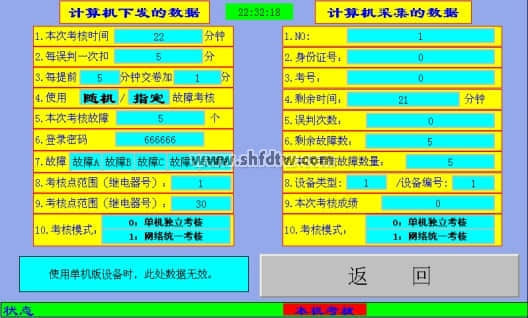 e. 如果設(shè)置的是隨機(jī)故障考核模式,則每次進(jìn)此頁面時(shí)系統(tǒng)都會(huì)重新隨機(jī)出題。