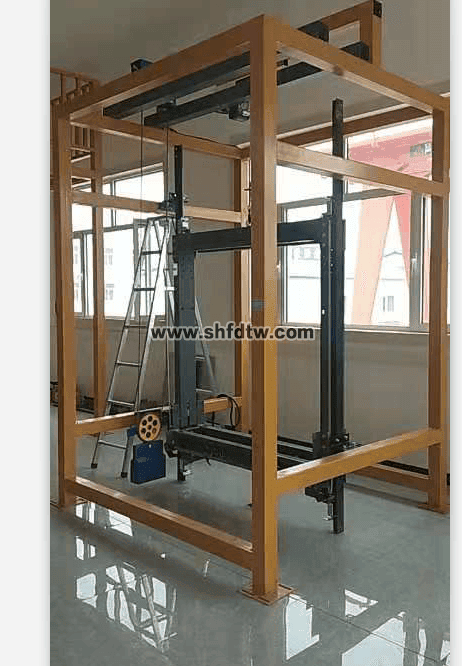 要求考核平臺(tái)能夠通過電動(dòng)控制操作,演示限速器動(dòng)作后帶動(dòng)安全鉗動(dòng)作將轎廂制動(dòng)在導(dǎo)軌上的動(dòng)作全過程,限速器安全鉗要求采用真實(shí)電梯的標(biāo)準(zhǔn)部件,安裝過程及動(dòng)作過程與真實(shí)電梯一致,采用電動(dòng)提升機(jī)構(gòu)帶動(dòng)轎廂框架提升到一定高度后,自由落體完成整體動(dòng)作過程,學(xué)員可以了解安全鉗的基本結(jié)構(gòu)、動(dòng)作原理,練習(xí)安全鉗的安裝和調(diào)整等實(shí)訓(xùn)。