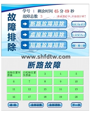 5)教師界面可單個設(shè)置也可多個故障同時設(shè)置,并有全部設(shè)置故障和全部清除等功能。