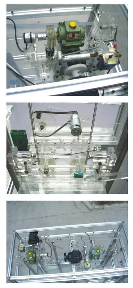 電梯的電氣控制系統(tǒng)采用進(jìn)口可編程控制器(PLC日本三菱)進(jìn)行智能控制和變頻(VVVF日本安川)調(diào)壓調(diào)速調(diào)頻驅(qū)動(dòng),其部件結(jié)構(gòu)組成,工作原理功能與實(shí)際電梯完全一樣,并具有安全鉗限速器,超速安全保護(hù)系統(tǒng)。