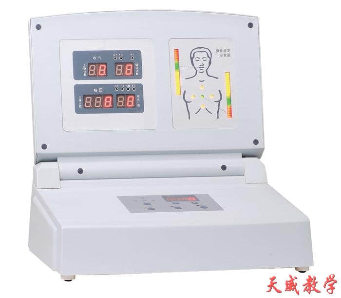 1、正確、錯(cuò)誤按壓的功能提示——按壓位置:首先找準(zhǔn)胸部正確位置即胸骨下切跡上兩指胸骨正中部(胸口劍突向上兩指處)為正確按壓區(qū),雙手交叉疊在一起,手臂垂直于模擬人胸部按壓區(qū),進(jìn)行胸外按壓。如按壓區(qū)按壓位置正確,按壓強(qiáng)度正確(正確胸外按壓深度5—6厘米),人體按壓指示燈正確區(qū)域綠燈發(fā)光顯示,正確按壓數(shù)碼計(jì)數(shù)1次,如按壓位置錯(cuò)誤,并有語言提示:“按壓位置錯(cuò)誤”。按壓強(qiáng)度錯(cuò)誤(按壓的深度小于5厘米或大于6厘米),按壓不足、過大,人體按壓強(qiáng)度指示燈不足(黃燈)、過大(紅燈)區(qū)域有黃燈、紅燈發(fā)光顯示,按壓錯(cuò)誤數(shù)碼計(jì)數(shù)1次。并有語言提示:“按壓不足或過大”等。需糾正錯(cuò)誤后,再操作。